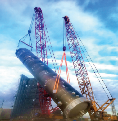 近日,浙江省工业设备安装集团有限公司二分和空分工程分公司 217项目部承建的中石油广东石化3×70000Nm3/h空分安装项目1#冷箱下塔顺利吊装就位。下塔高30.7m,直径4.74m,重109t,该塔的吊装 是中石油广东石化炼化一体化项目首件百吨级以上设备吊装,也是空分装置建设过程中的重要里程碑,标志着空分装置由土建施工阶段正式转入安装阶段。
