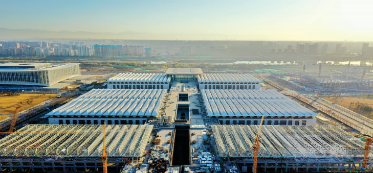 近日,中建二局安装公司建设的西安国际会展二期展览中心项目E4展厅封顶,该项目是西安市十项重点工作之一、十四运会配套项目,建成之后将成为中国中西部最大的会展中心。