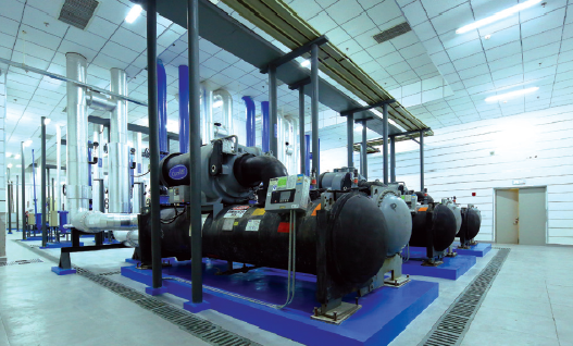 南昌铜锣湾广场工程位于红谷滩新区八一桥头,庐山南大道与丰和北大道交汇处,是集购物、餐饮、娱乐为一体的大型商业综合体。该工程总建筑面积167,676.7平方米,地下2层,地上5层,檐高26m。中铁建设集团机电总承包事业部负责电气、空调、给排水、消防等系统的机电深化与安装工作。本工程综合排布及三维深化得到了建设单位一致好评。其中一种可移动式便捷放线装置及线槽灯隐形支架的应用,提高了地下室车库区施工效率和车库区整体美观的效果,图为南昌铜锣湾广场设备机房。