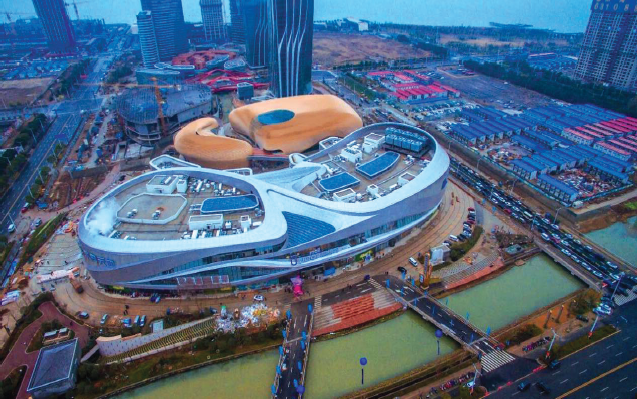 近日,由中建安装工程有限公司苏州公司承建机电安装工程的苏州湾水秀天地项目购物公园(1号楼)盛大开业。 该项目是集亲水商业、国际商务、岛居酒店、临水公寓、生态文旅五大业态于一体的大型城市综合体,是苏州市重点工程。中建安装主要承接该项目1-12#楼机电安装工程,总建筑面积29万平方米。目前,项目部正在对影院(6号楼)、海洋馆(7号楼)、写字楼(12号楼)进行收尾、内部检测。图为苏州湾水秀天地项目购物公园外貌。