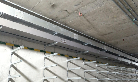 杭州市沿江大道(观潮路-和睦港)地下综合管廊工程西起观潮路,东至和睦港,全长3.65km,估算投资约为7.4亿元,收容给水、燃气、电力、通信共四类管线并预留部分管位。中天建设集团浙江安装工程有限公司负责完成管廊内及附属用房的机电安装内容。目前,该项目主体建设已经完成95%,机电安装部分已经完成50%,预计在十一月底竣工。图为现场安装局部成品图。