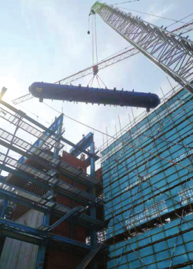 近日, 浙江省工业设备安装集团有限公司第四分公司承建的江西丰城生活垃圾焚烧发电项目2号锅炉汽包吊装成功。该项目建设规模为2×400t/d+600t/d垃圾焚烧锅炉+1×15MW凝汽式汽轮发电机组安装工程, 汽包自重39t, 直径1.5m, 长度14.73m, 吊装高度34.2m。 项目部制定了科学周密的吊装方案, 确保汽包吊装的顺利完成。