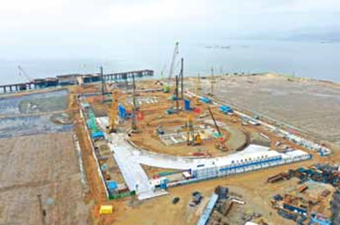 近日,中建一局安装公司承建的中石油深圳LNG深基坑项目 安全有序复工复产。该项目是国内首次在人工填海的陆地上建造 超大超深基坑,也是国内目前最深基坑工程(50米)。项目建 成后可安全稳定地向深圳以及香港供气,实现陆上管道气和进 口LNG的资源互补,以及作为管输天然气的应急保障用气。目 前,该项目到岗的130多名管理人员和施工人员正在进行三轴搅 拌桩工程的施工。