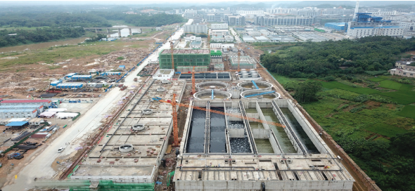 近日,由广东省工业设备安装有限公司 负责的广西玉林(福绵)环保产业园三期污 水厂项目完成了830通水调试的节点目标, 项目进入全面调试运营阶段。该项目污水厂 处理规模为5.0万t/d,主要处理污水类型为 缸染类、浆纱类两种,建筑面积为5万平方米 ,共 20座构筑物。公司主要负责工艺设备工程、工 艺管道工程、电气工程、自控工程、清水调试 及验收等内容。