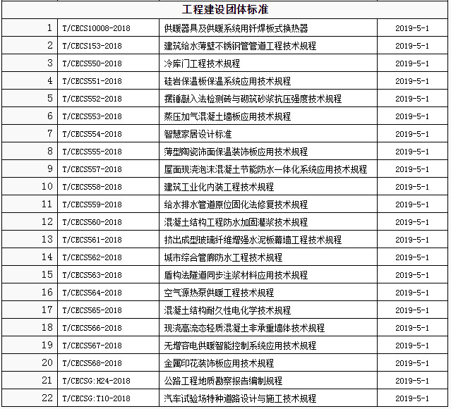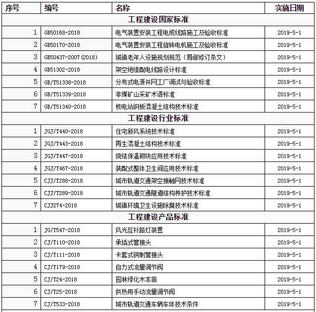 2019年5月开始实施的工程建设标准