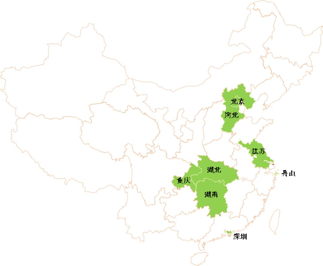 蓝色为2017-2019有过相关报道的省市