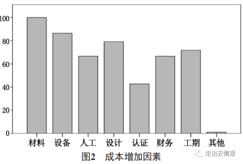 结合图2统计结果发现,企业在采用外方标准时,首先要替换材料标准,造成几乎100%企业材料成本都增加。