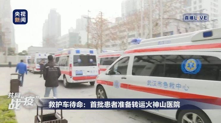 首批患者转运火神山医院(图源:央视新闻)