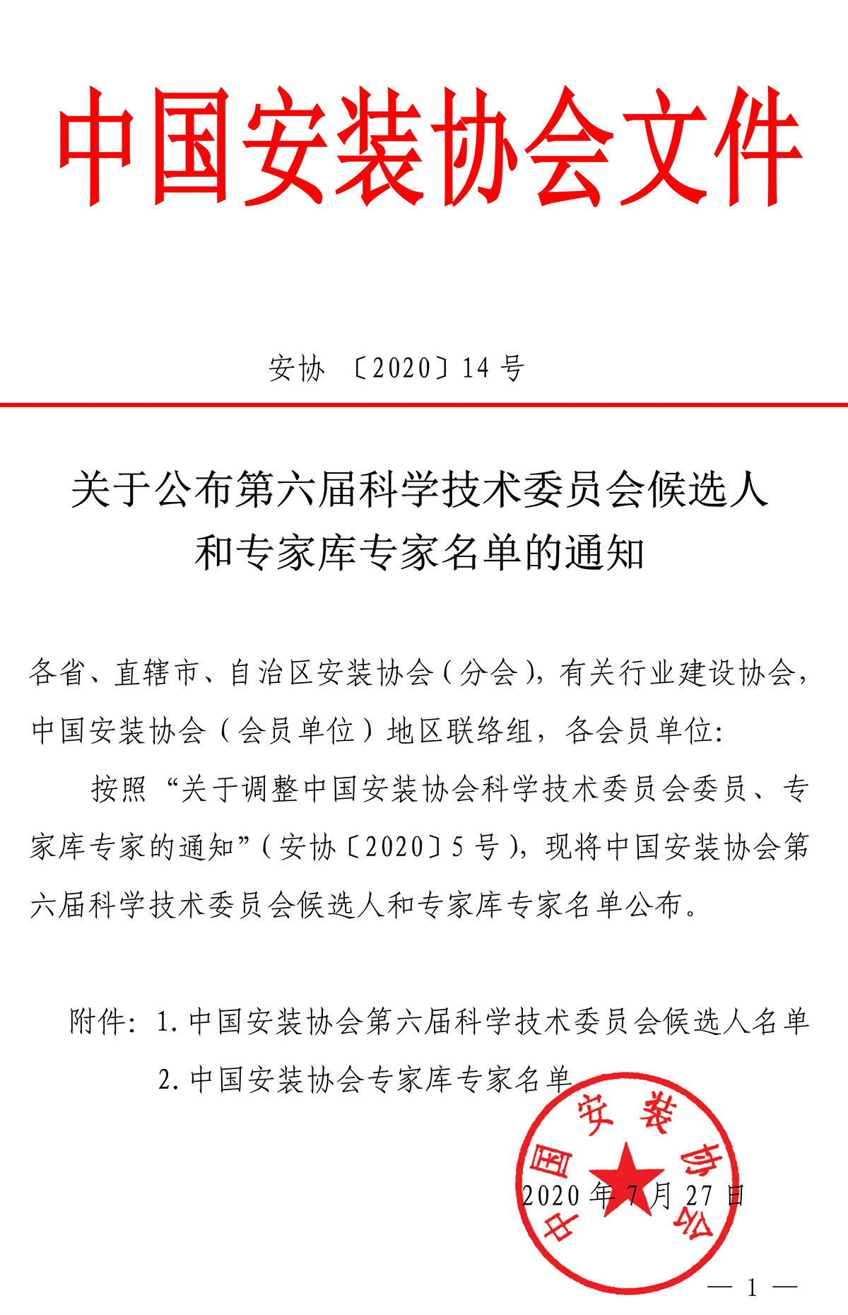 关于公布第六届科学技术委员会候选人和专家库专家名单的通知