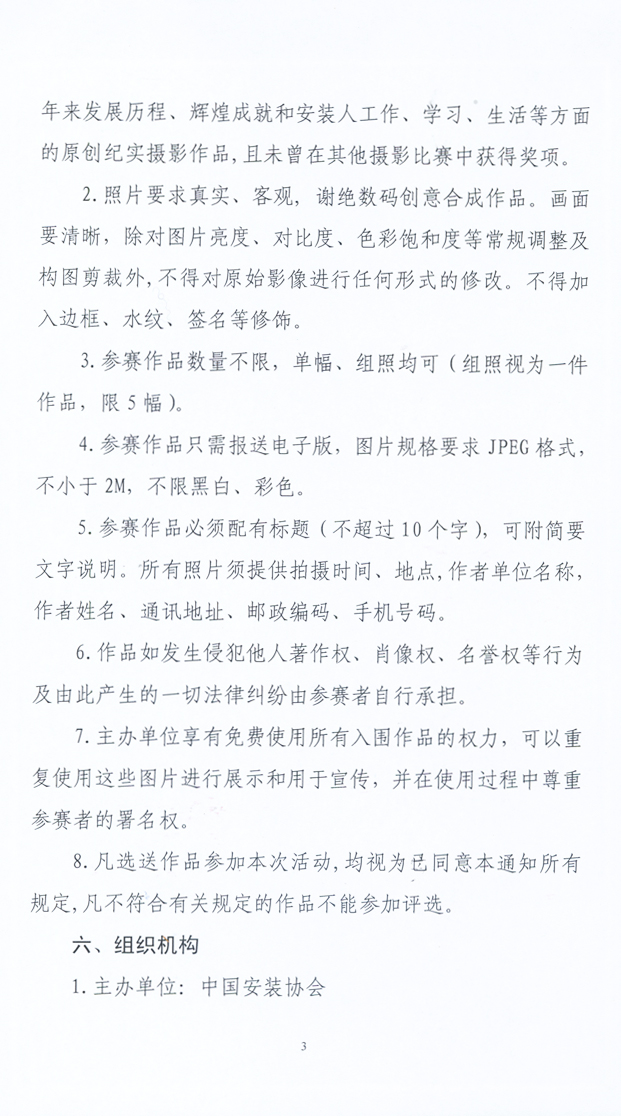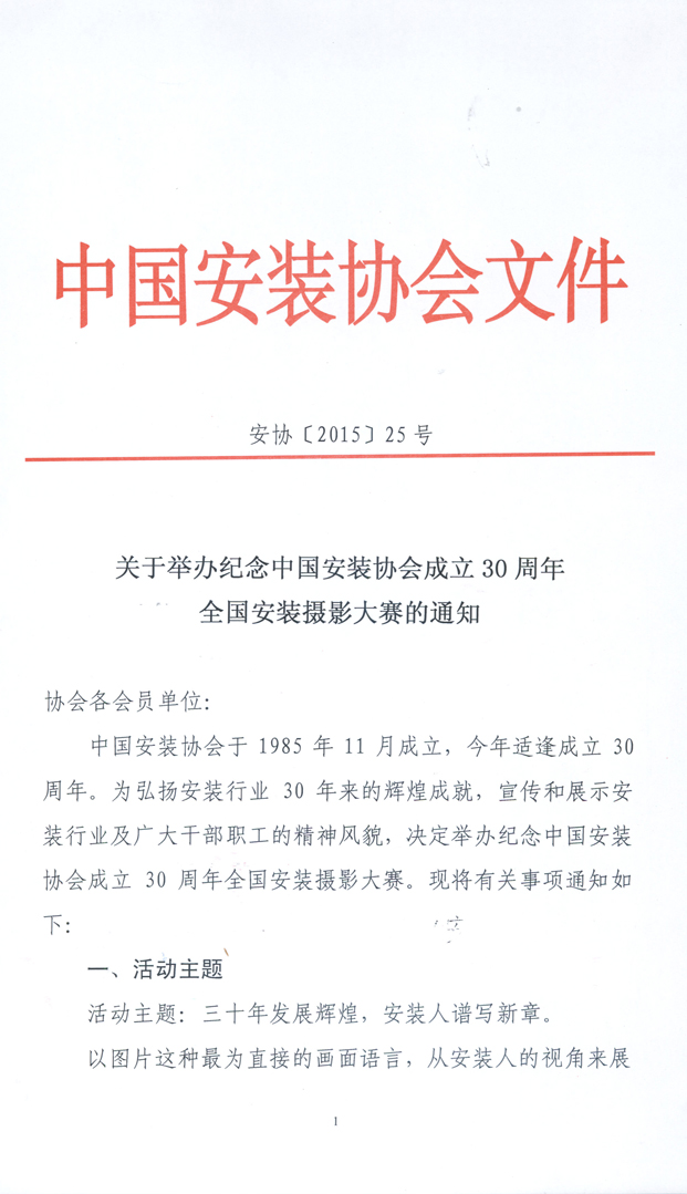 关于举办纪念中国安装协会成立30周年全国安装摄影大赛的通知