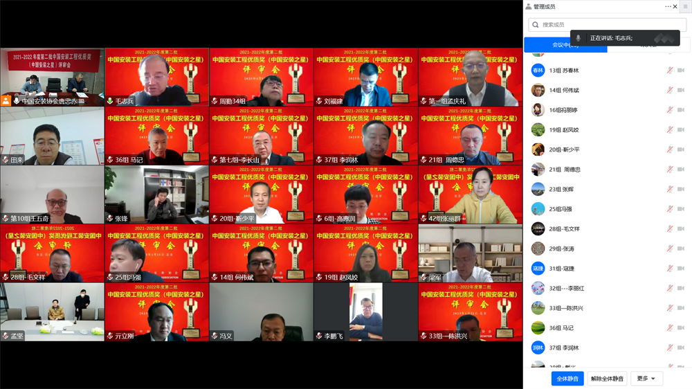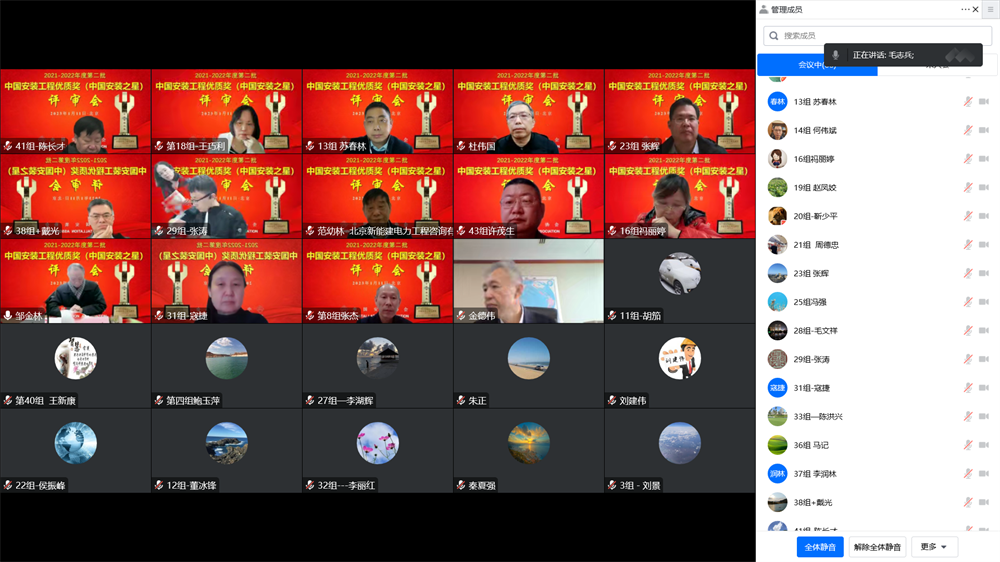 元月11日,2021-2022年度第二批中国安装工程优质奖(中国安装之星)评审会在北京以视频会议方式召开。中国安装协会田秀增会长、杨存成秘书长、监事会邹金林监事长、唐忠赤副秘书长,17位评委,43位复查组组长,以及部分省协会负责人等70多人在线参会。评审会由毛志兵主任,冯义、邹金林、孟坚副主任主持,283项工程通过评审。