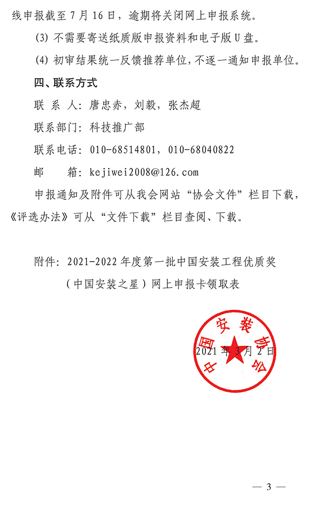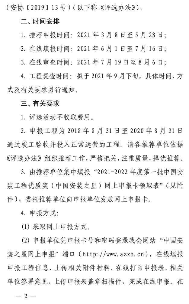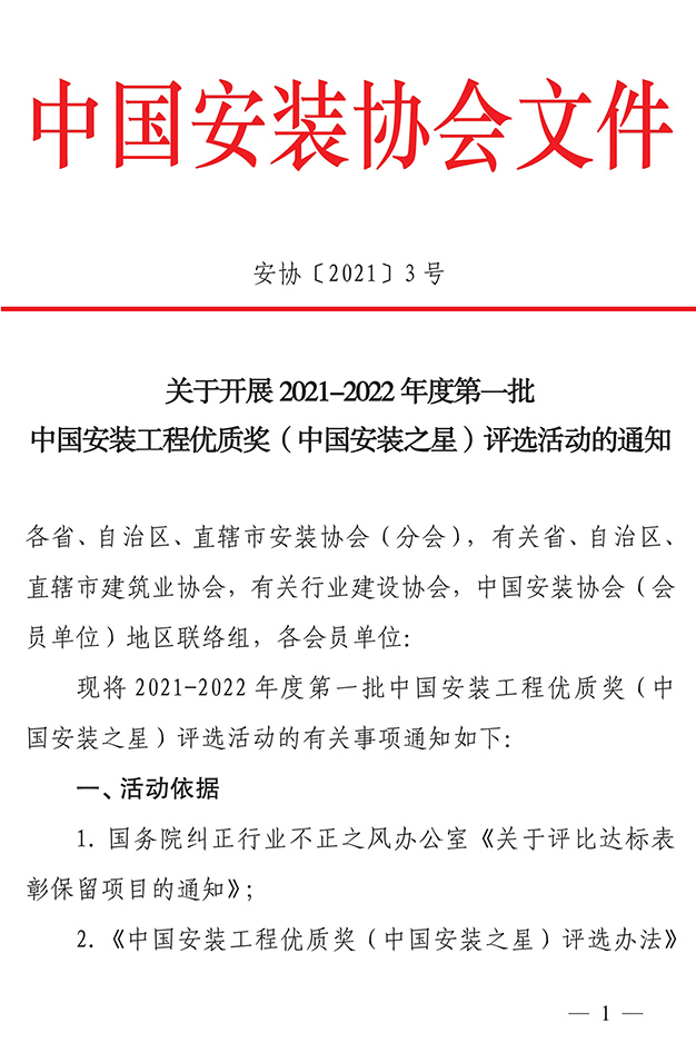 关于开展2021-2022年度第一批中国安装工程优质奖(中国安装之星)评选活动的通知
