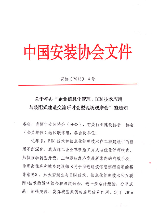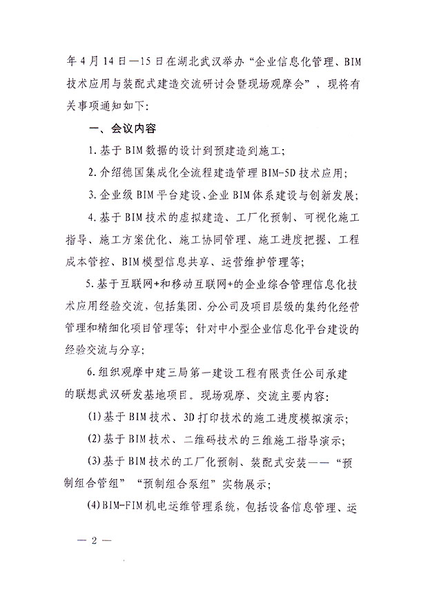 关于举办“企业信息化管理、BIM技术应用 与装配式建造交流研讨会暨现场观摩会”的通知