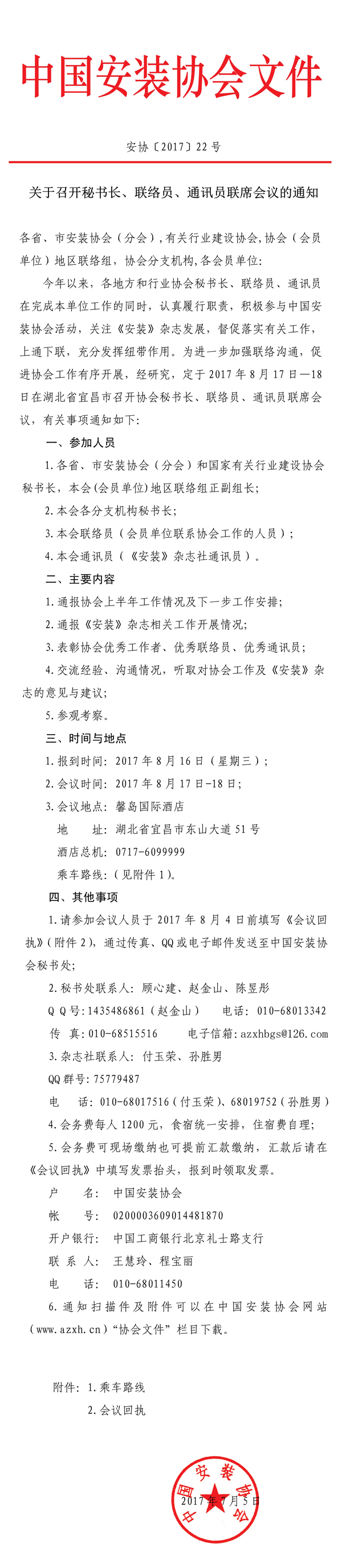 关于召开秘书长、联络员、通讯员联席会议的通知