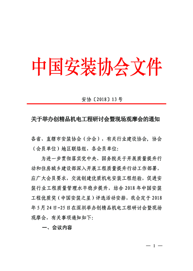 关于举办创精品机电工程研讨会暨现场观摩会的通知
