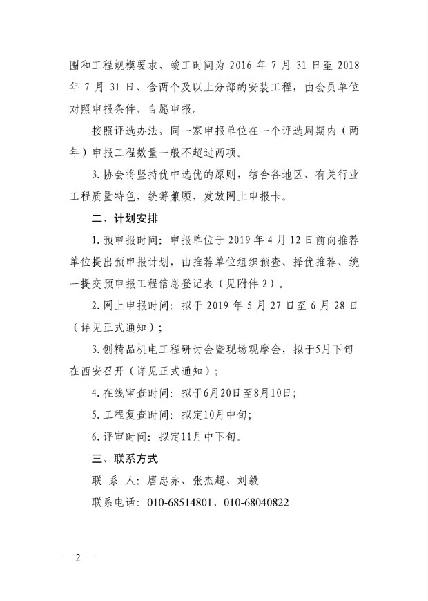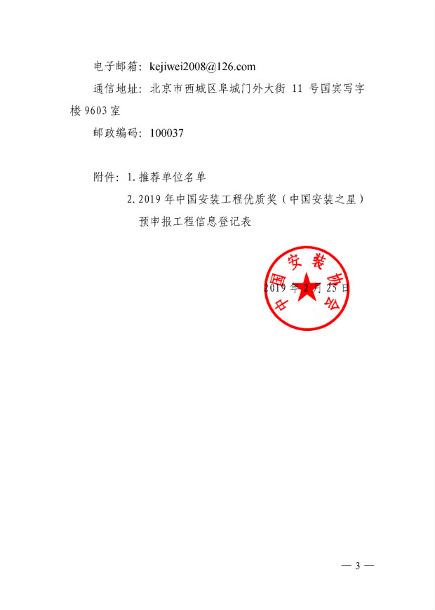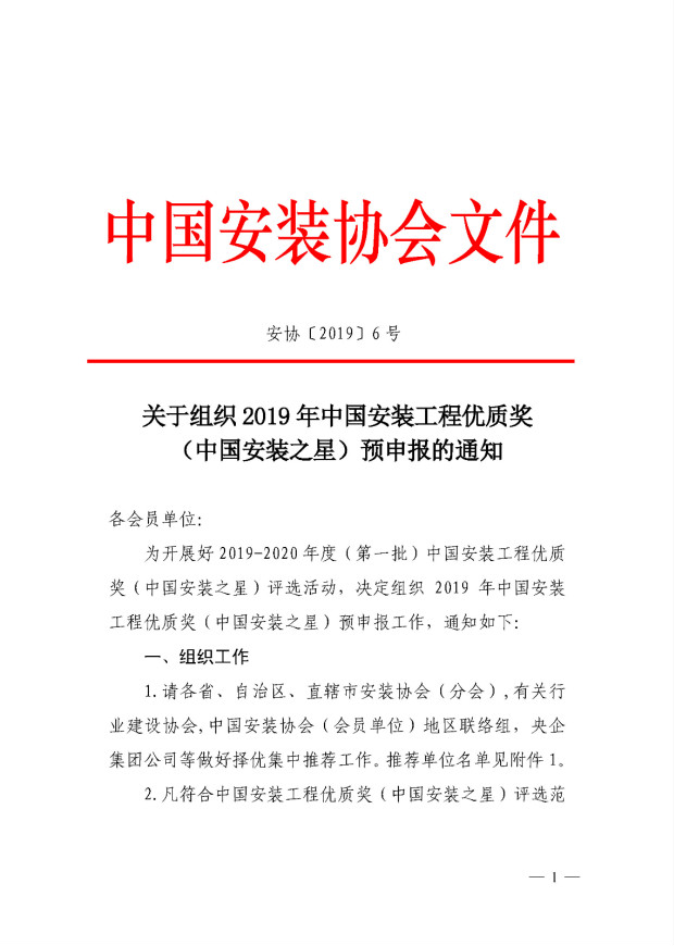 关于组织2019年中国安装工程优质奖(中国安装之星)预申报的通知