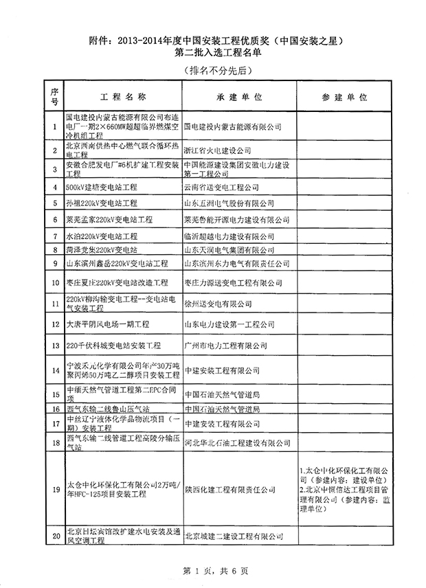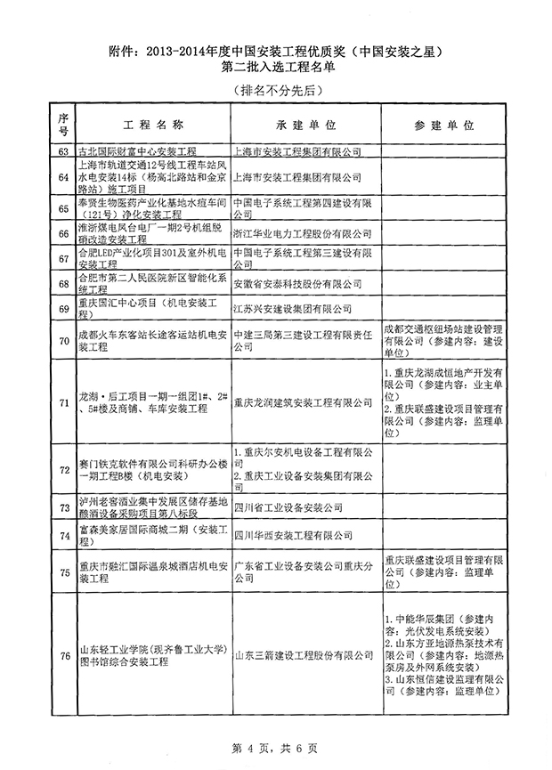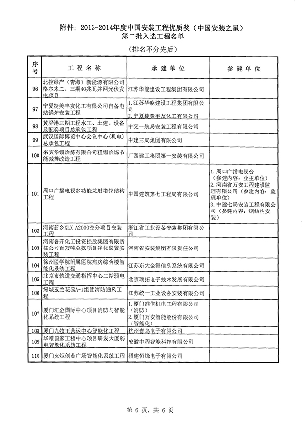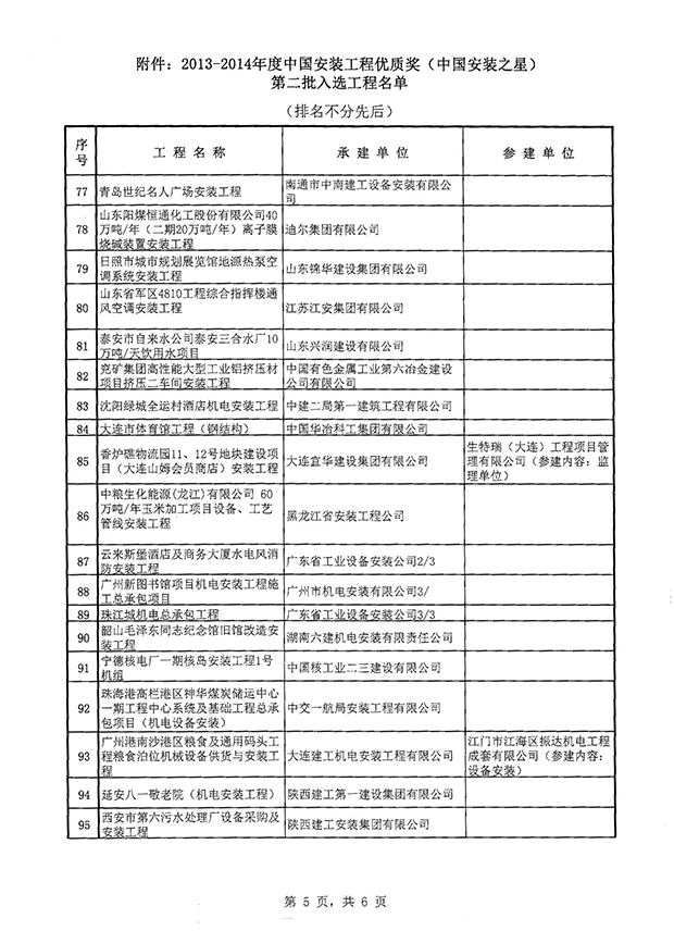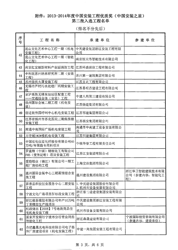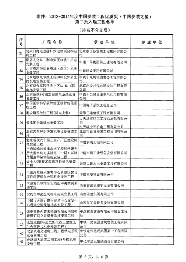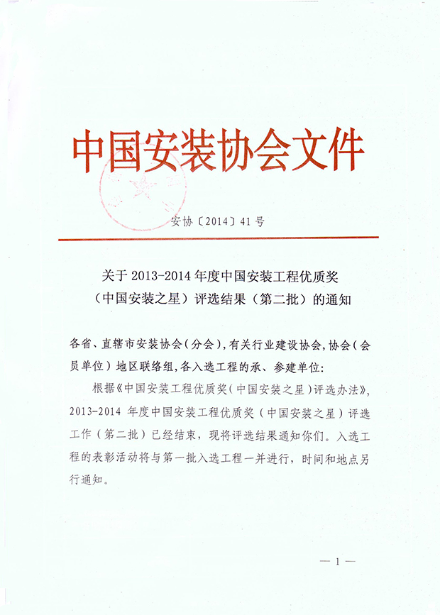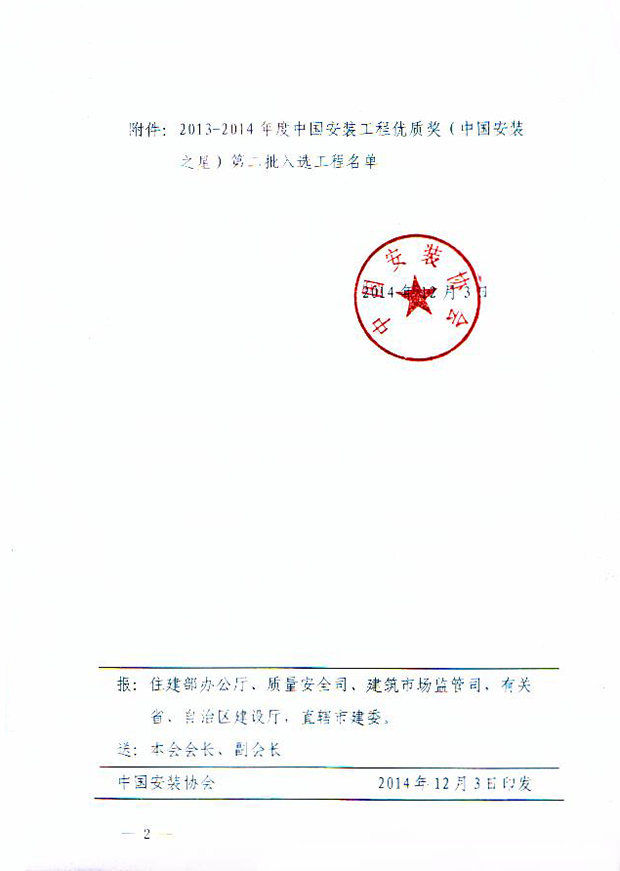 关于2013-2014年度中国安装工程优质奖(中国安装之星)评选结果(第二批)的通知