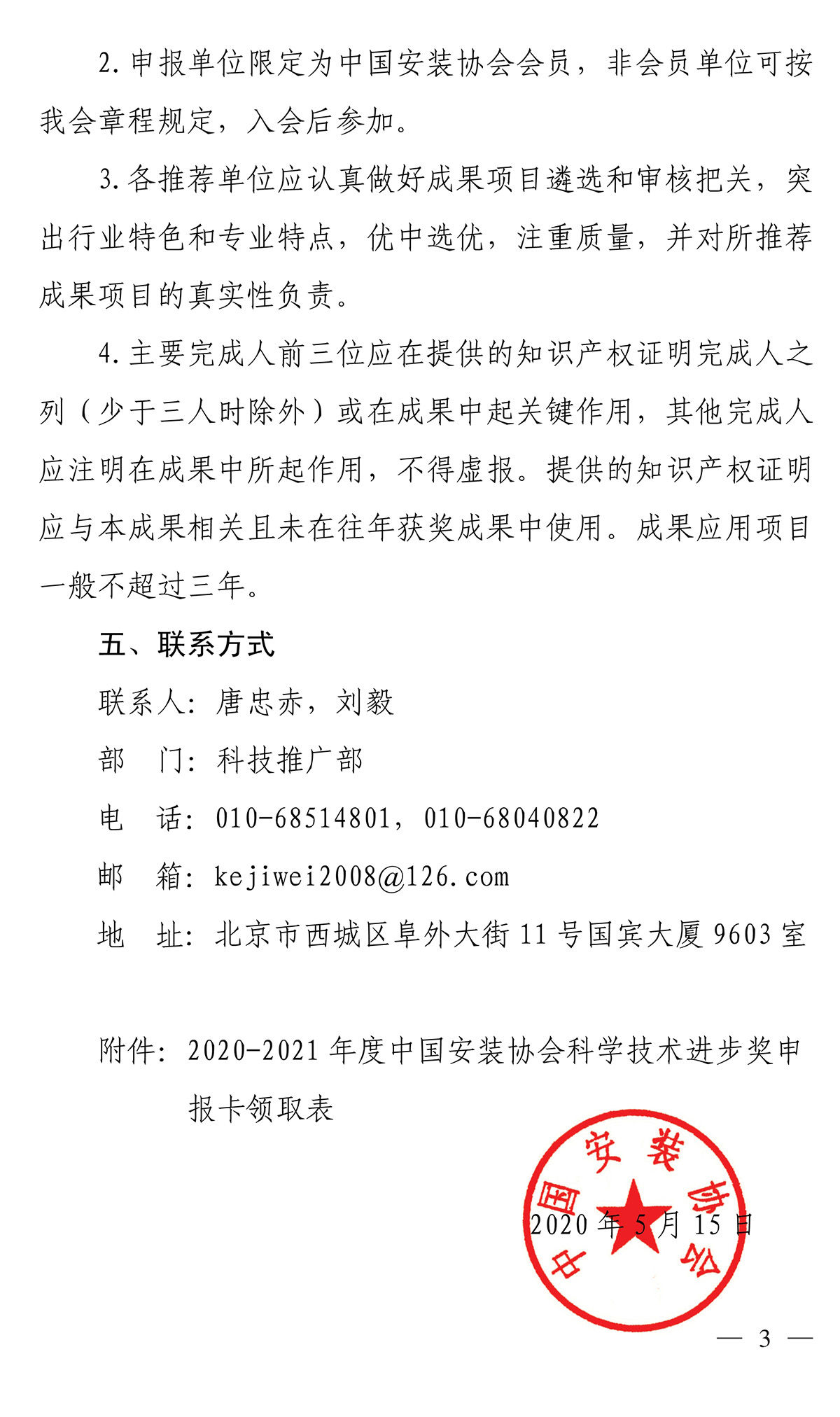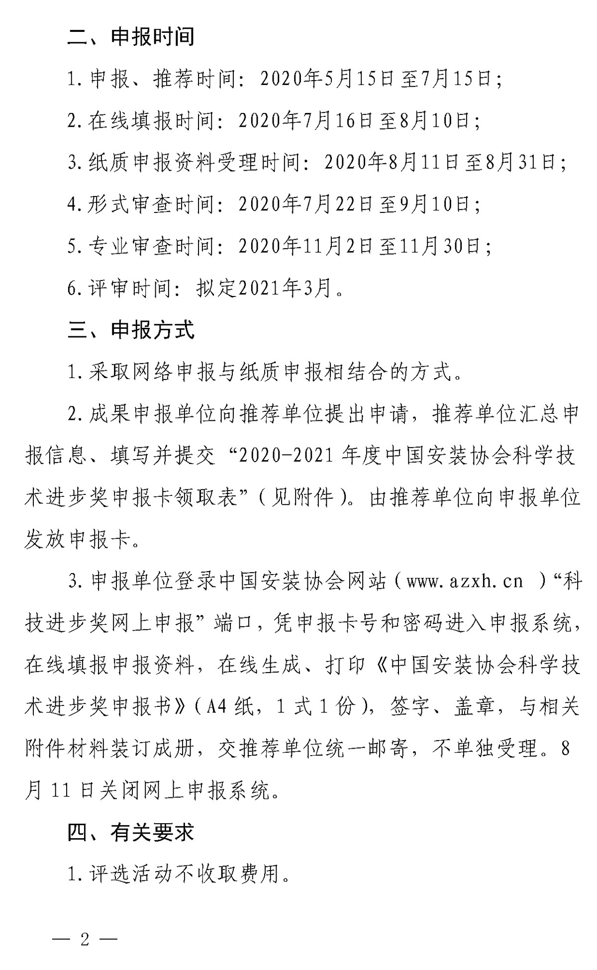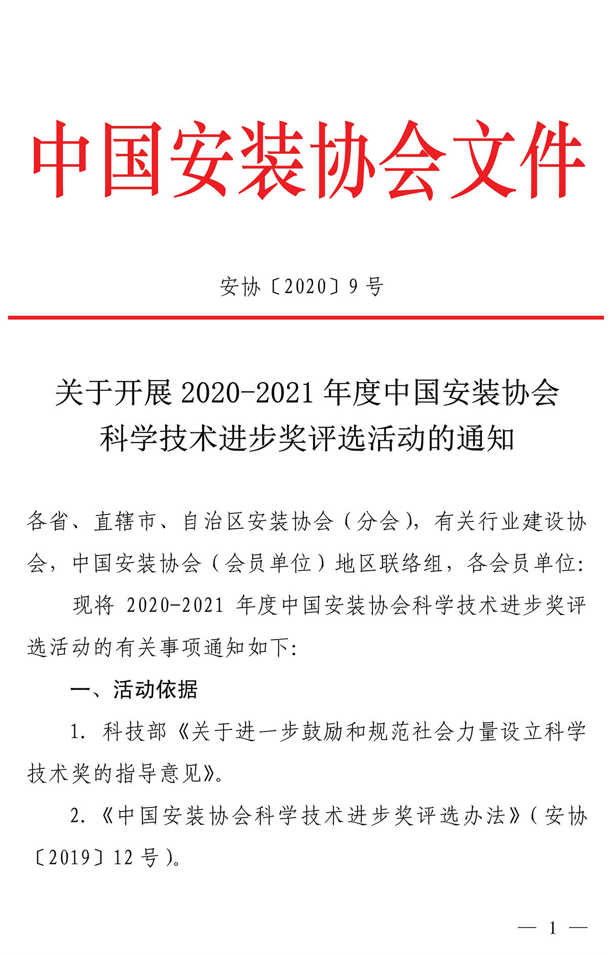 关于开展2020-2021年度中国安装协会科学技术进步奖评选活动的通知